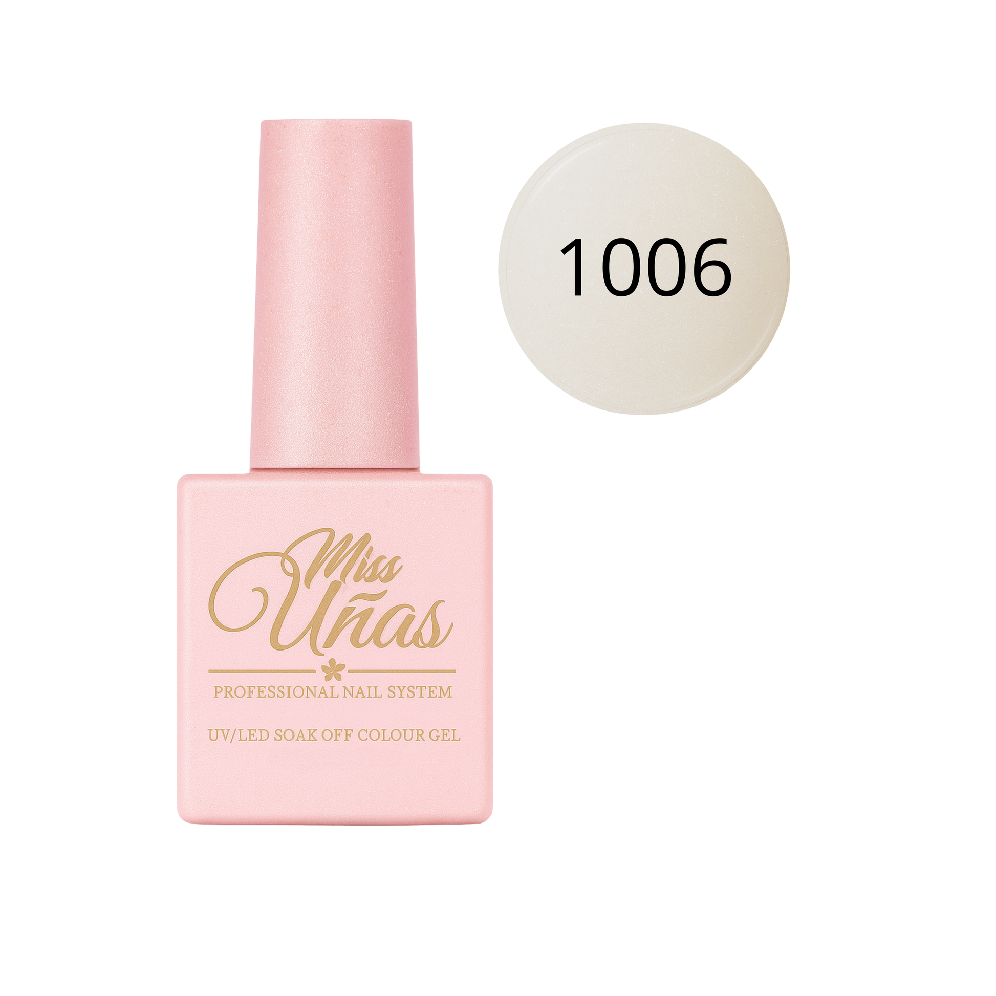 Cada frasco Miss Uñas contiene 10 ml de esmalte en gel dentro de un envase de vidrio reciclable de doble revestimiento, diseñado para proteger la fórmula y mantener su estabilidad.