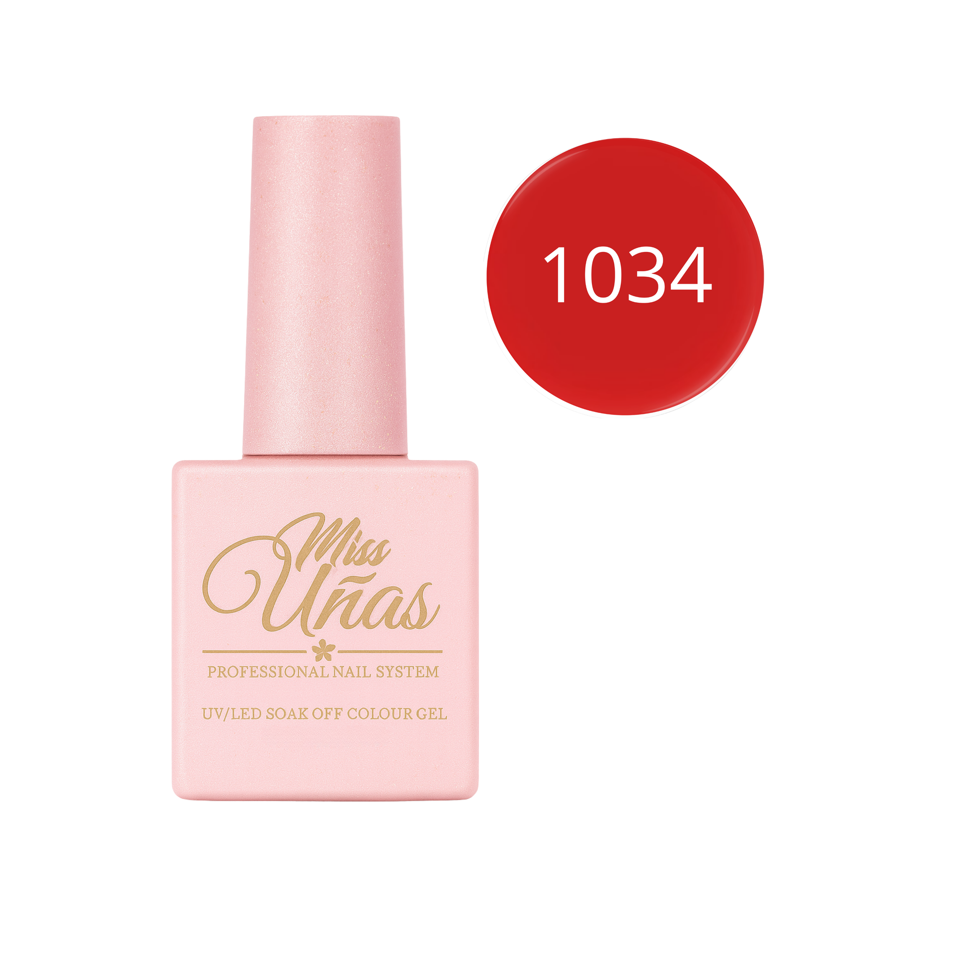 Cada frasco Miss Uñas contiene 10 ml de esmalte en gel dentro de un envase de vidrio reciclable de doble revestimiento, diseñado para proteger la fórmula y mantener su estabilidad.