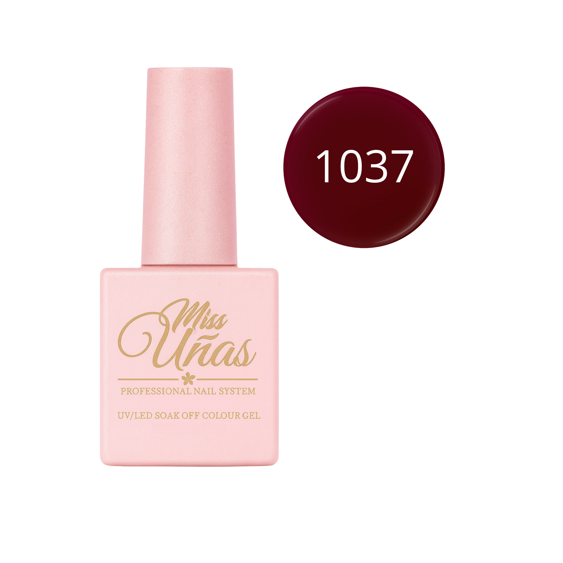 Cada frasco Miss Uñas contiene 10 ml de esmalte en gel dentro de un envase de vidrio reciclable de doble revestimiento, diseñado para proteger la fórmula y mantener su estabilidad.