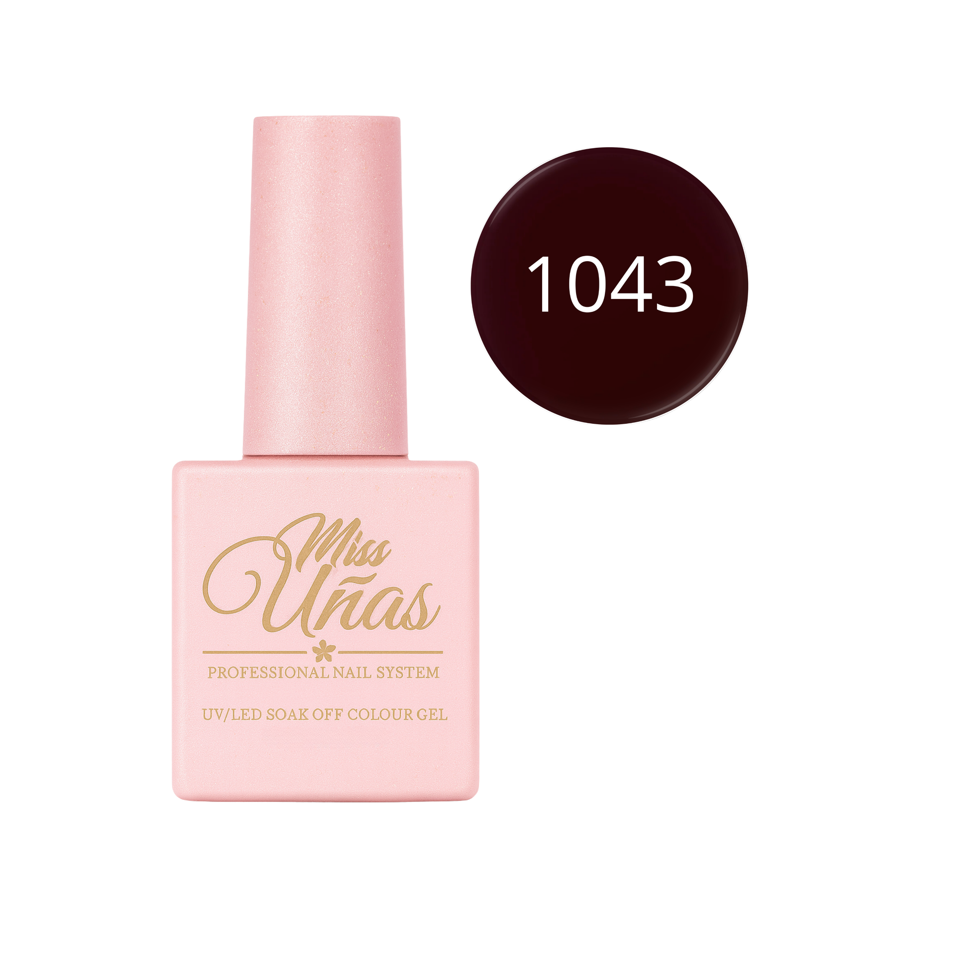 Cada frasco Miss Uñas contiene 10 ml de esmalte en gel dentro de un envase de vidrio reciclable de doble revestimiento, diseñado para proteger la fórmula y mantener su estabilidad.