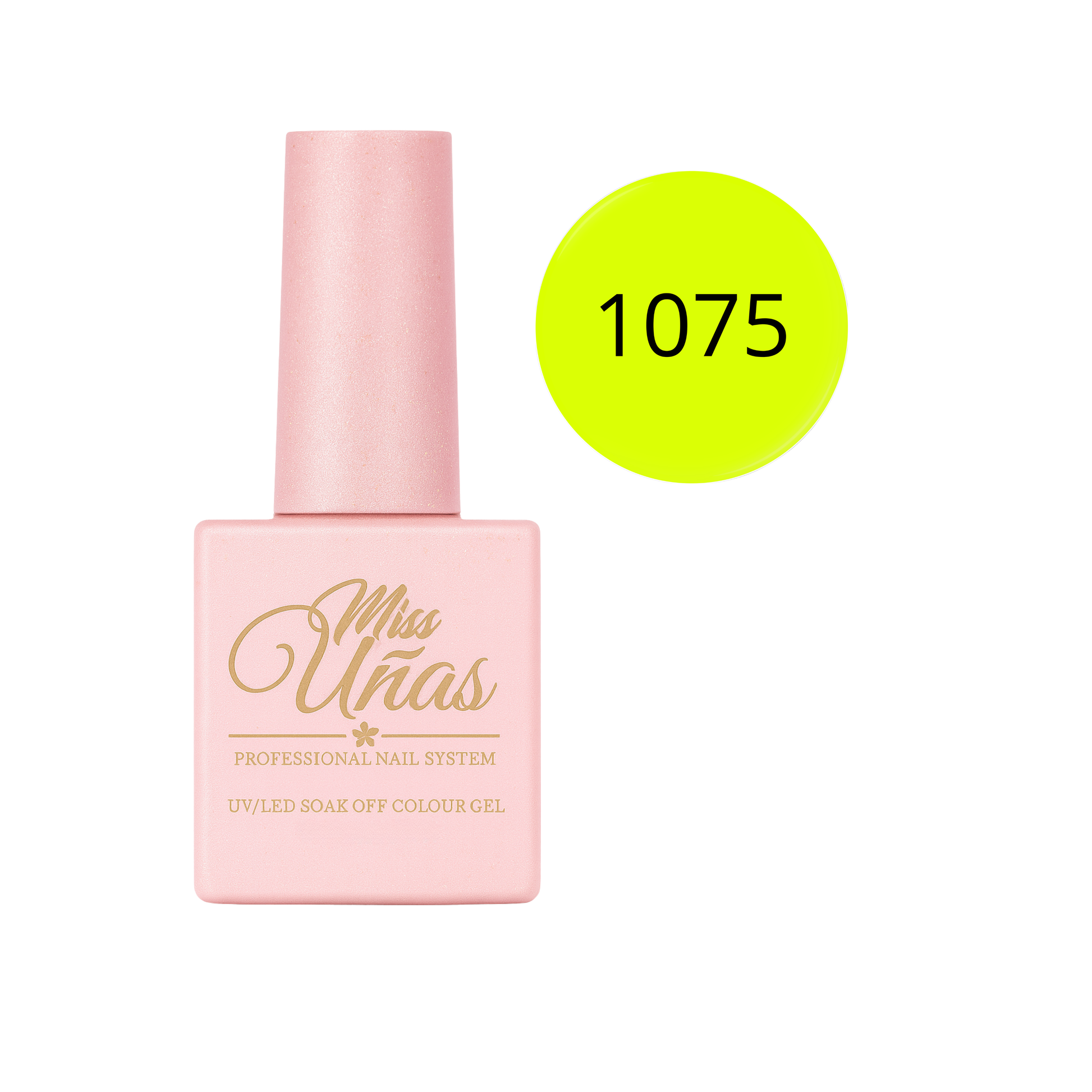 Cada frasco Miss Uñas contiene 10 ml de esmalte en gel dentro de un envase de vidrio reciclable de doble revestimiento, diseñado para proteger la fórmula y mantener su estabilidad.