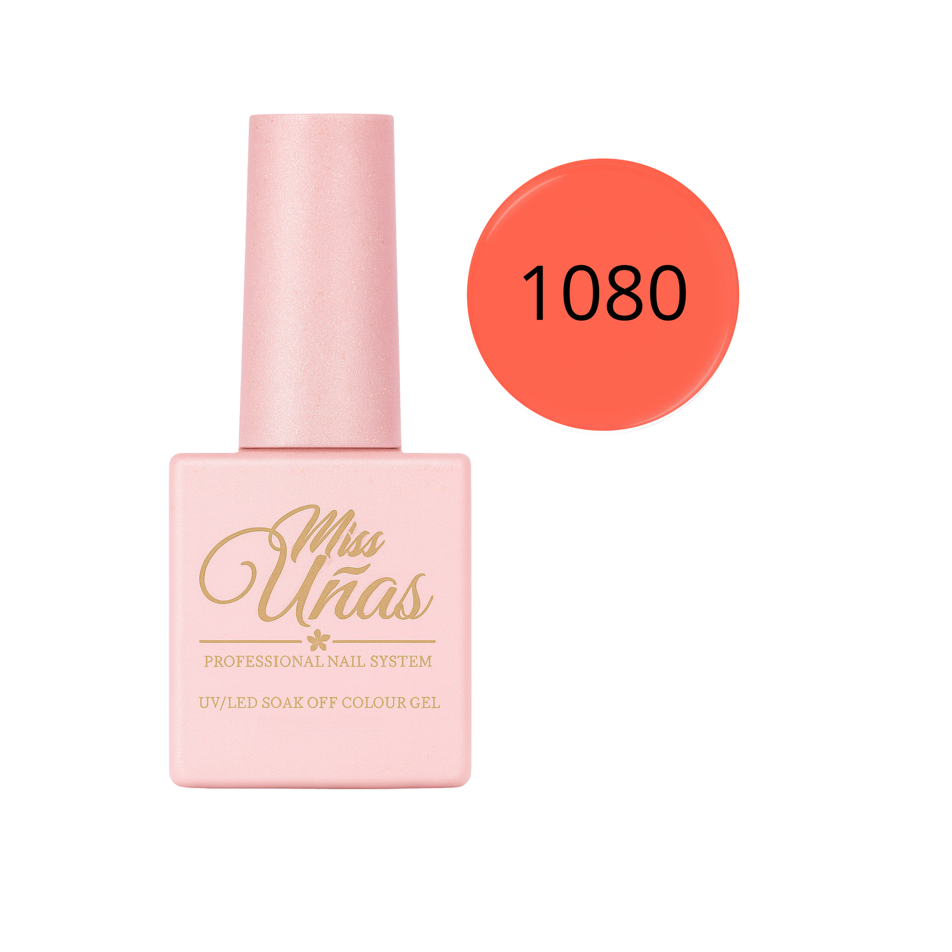 Cada frasco Miss Uñas contiene 10 ml de esmalte en gel dentro de un envase de vidrio reciclable de doble revestimiento, diseñado para proteger la fórmula y mantener su estabilidad.
