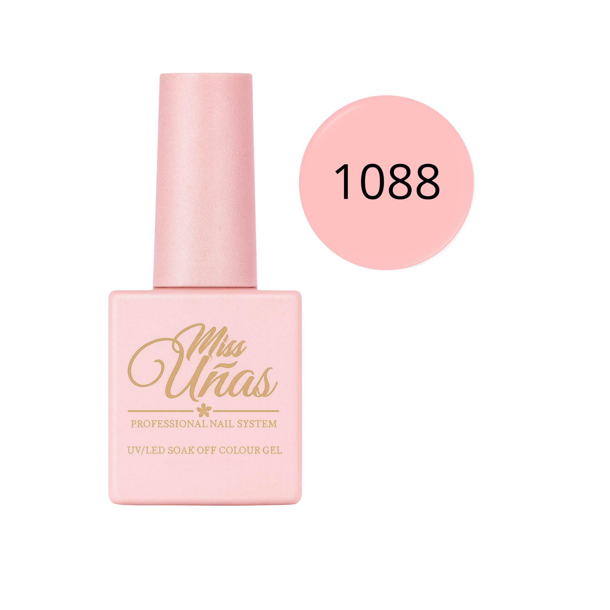 Cada frasco Miss Uñas contiene 10 ml de esmalte en gel dentro de un envase de vidrio reciclable de doble revestimiento, diseñado para proteger la fórmula y mantener su estabilidad.