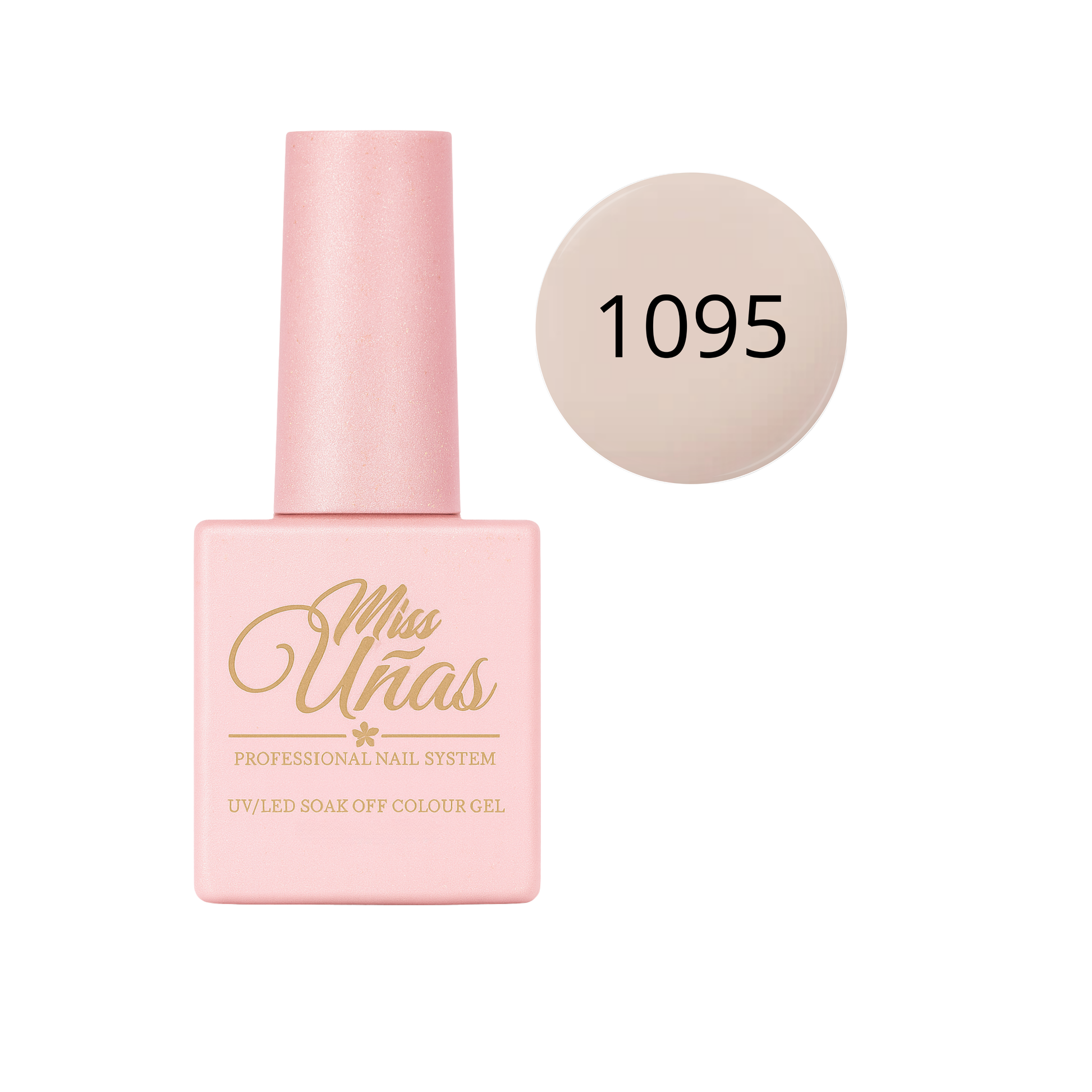 Cada frasco Miss Uñas contiene 10 ml de esmalte en gel dentro de un envase de vidrio reciclable de doble revestimiento, diseñado para proteger la fórmula y mantener su estabilidad.