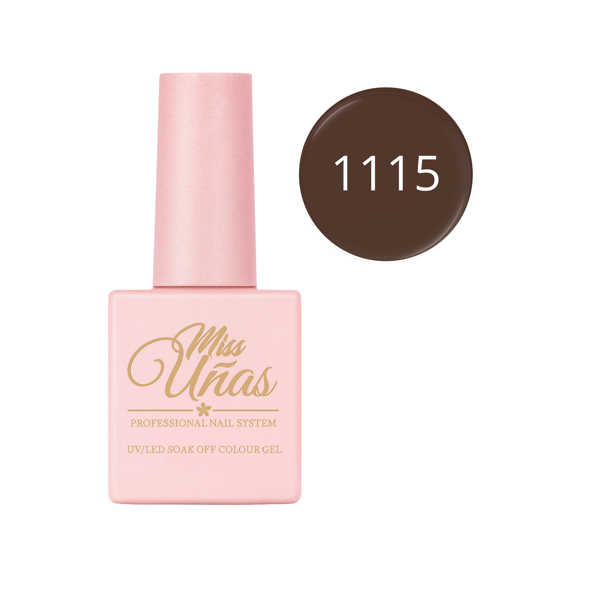 Cada frasco Miss Uñas contiene 10 ml de esmalte en gel dentro de un envase de vidrio reciclable de doble revestimiento, diseñado para proteger la fórmula y mantener su estabilidad.